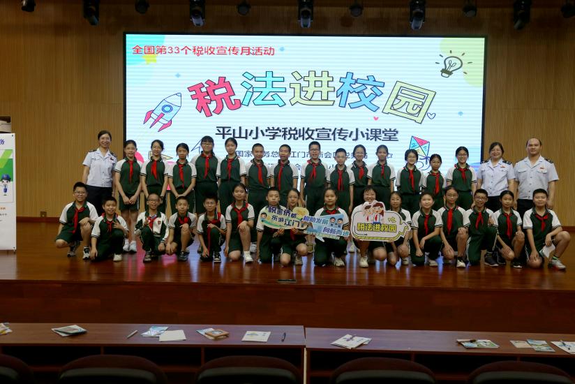 “税法进校园”活动是区税务局每年税收宣传月的重头戏。近日,区税务局走进新会区平山小学,带领同学们走进税收大课堂,感受“税法”的魅力。