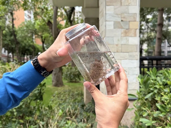 专业人员正往里面投放携带沃尔巴克菌的绝育雄蚊蛹,待雄蚊蛹羽化成蚊子后,会与野外雌蚊交配,使雌蚊无法繁殖后代,成为阻击登革热、基孔肯雅热等蚊媒传染病的“生物尖兵”。